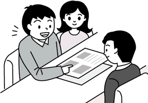 | STEP 2 打ち合わせ、ご相談 ご要望をカタチにするため必要な内容をお尋ねいたします。ご予算、イメージなど大まかな内容でもかまいません。何でも(趣味、好きな色、素材将来の計画など)ご遠慮なくお申し付けください。ご納得いただけるようご提案いたします。 |